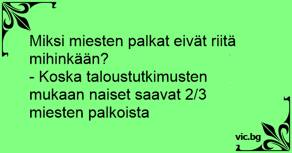 - Koska taloustutkimusten mukaan naiset saavat 2/3 miesten palkoista