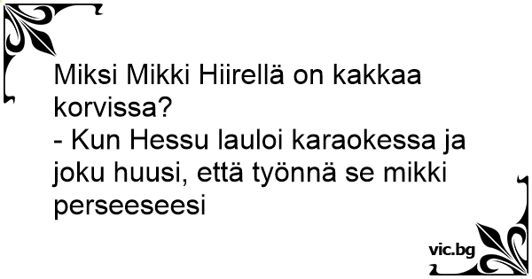 - Kun Hessu lauloi karaokessa ja joku huusi, että työnnä se mikki perseeseesi