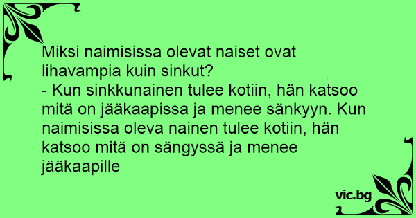 - Kun sinkkunainen tulee kotiin, hän katsoo mitä on jääkaapissa ja menee sänkyyn. Kun naimisissa oleva nainen tulee kotiin, hän katsoo mitä on sängyssä ja menee jääkaapille