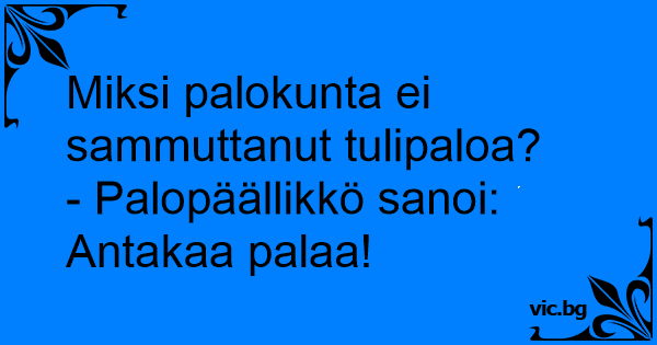 - Palopäällikkö sanoi: Antakaa palaa!