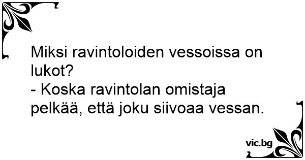 - Koska ravintolan omistaja pelkää, että joku siivoaa vessan.
