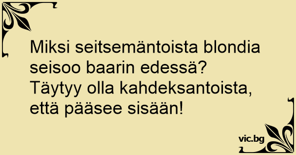 Miksi 17 blondia seisoi baarin edessä? – Piti olla 18, jotta pääsi sisään.
