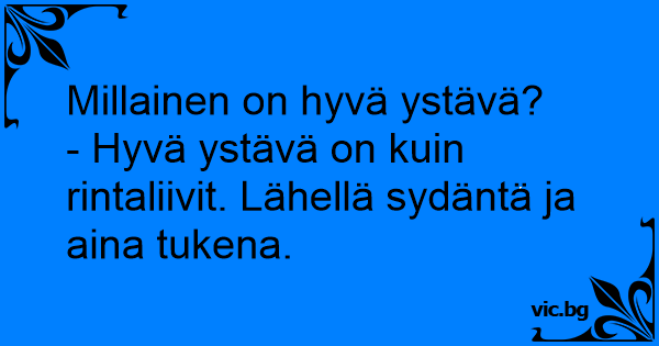 - Hyvä ystävä on kuin rintaliivit. Lähellä sydäntä ja aina tukena.