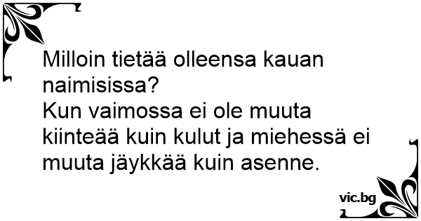 Kun vaimossa ei ole muuta kiinteää kuin kulut ja miehessä ei muuta jäykkää kuin asenne.