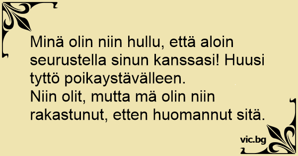 Niin olit, mutta mä olin niin rakastunut, etten huomannut sitä.