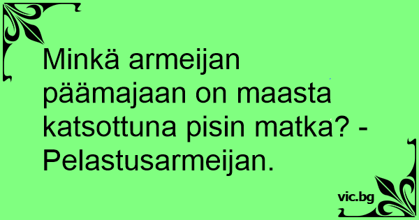 Minkä armeijan päämajaan on maasta katsottuna pisin matka? - Pelastusarmeijan.