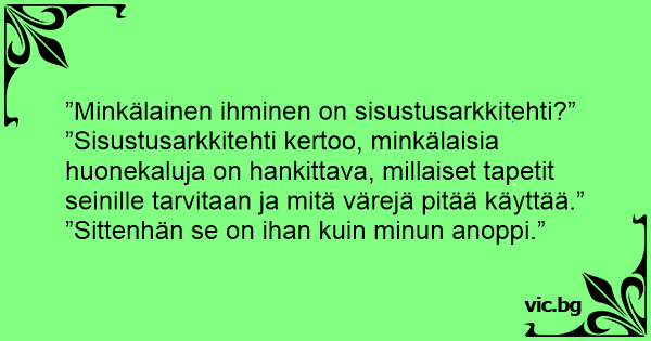 ”Sisustusarkkitehti kertoo, minkälaisia huonekaluja on hankittava, millaiset tapetit seinille tarvitaan ja mitä värejä pitää käyttää.”