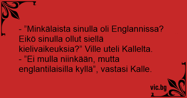- ”Minkälaista sinulla oli Englannissa? Eikö sinulla ollut siellä kielivaikeuksia?” Ville uteli Kallelta.