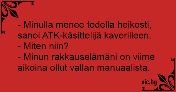 - Minulla menee todella heikosti, sanoi ATK-käsittelijä kaverilleen.
