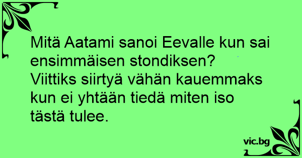 Mitä Aatami sanoi Eevalle kun sai ensimmäisen stondiksen?