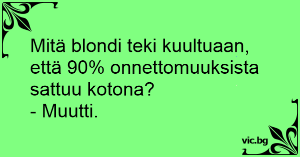 Mitä blondi teki kuultuaan, että 90% onnettomuuksista sattuu kotona?