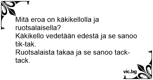 Ruotsalaista takaa ja se sanoo tack-tack.