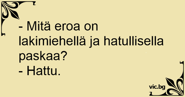 - Mitä eroa on lakimiehellä ja hatullisella paskaa?