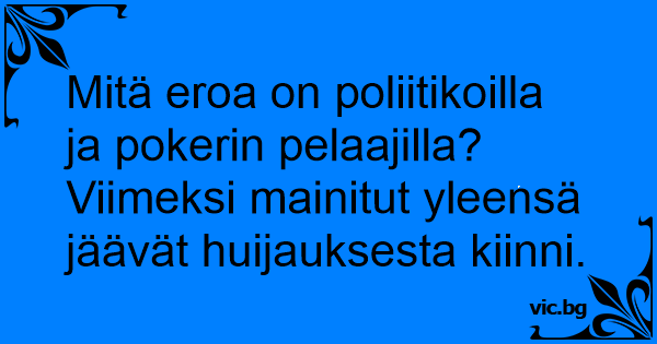 Mitä eroa on poliitikoilla ja pokerin pelaajilla? Viimeksi mainitut yleensä jäävät huijauksesta kiinni.