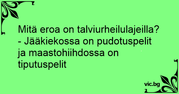 - Jääkiekossa on pudotuspelit ja maastohiihdossa on tiputuspelit