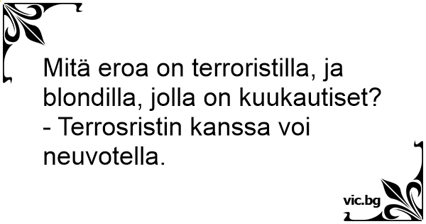 – Vad är det för skillnad mellan en terrorist och en vänsterfeminist med PMS? – Man kan förhandla med terroristen.