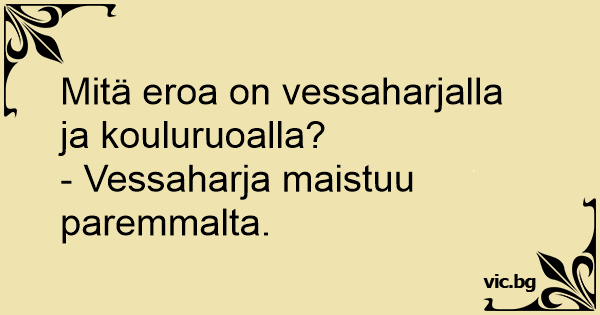 Mitä eroa on vessaharjalla ja kouluruoalla?