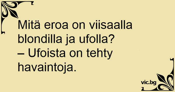 Mitä yhteistä on ufoilla ja viisailla blondeilla? Sellaisista aina kuulee, mutta niitä ei koskaan näe.