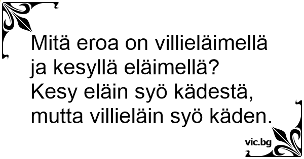 Kesy eläin syö kädestä, mutta villieläin syö käden.