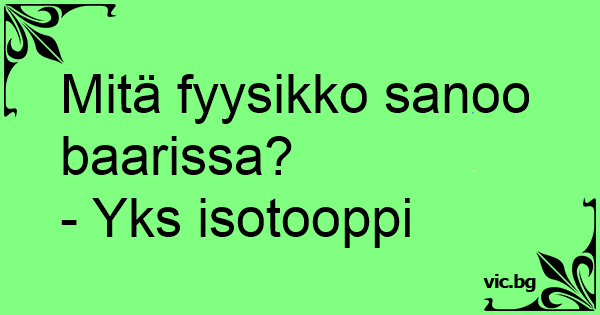 Mitä fyysikko sanoo baarissa?
