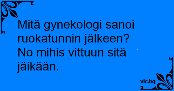Mitä gynekologi sanoi ruokatunnin jälkeen?