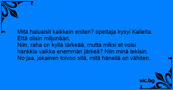 Mitä haluaisit kaikkein eniten? opettaja kysyi Kallelta.