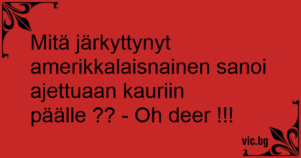 Mitä järkyttynyt amerikkalaisnainen sanoi ajettuaan kauriin päälle ?? - Oh deer !!!