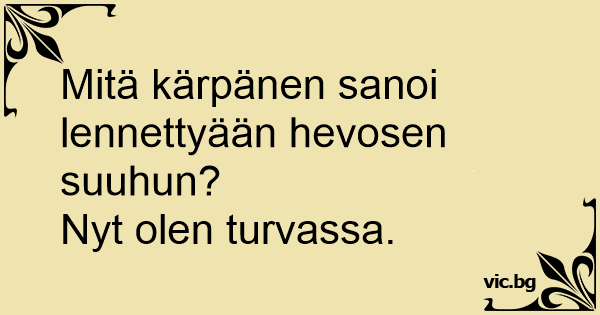 Mitä kärpänen sanoi lennettyään hevosen suuhun?