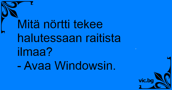 Mitä nörtti tekee halutessaan raitista ilmaa?