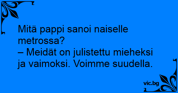 Mitä pappi sanoi naiselle metrossa?