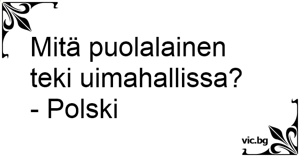 Mitä puolalainen teki...