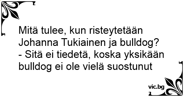 Mitä tulee, kun risteytetään Johanna Tukiainen ja bulldog?