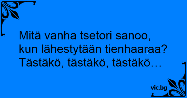 Mitä vanha tsetori sanoo, kun lähestytään tienhaaraa?