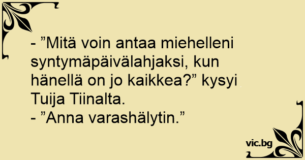 - ”Mitä voin antaa miehelleni syntymäpäivälahjaksi, kun hänellä on jo kaikkea?” kysyi Tuija Tiinalta.
