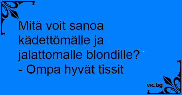 Mitä voit sanoa kädettömälle ja jalattomalle blondille?