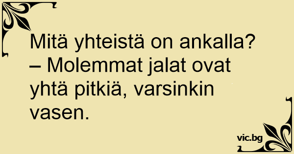 – Molemmat jalat ovat yhtä pitkiä, varsinkin vasen.