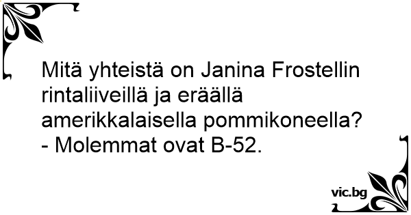 Mitä yhteistä on Janina Frostellin rintaliiveillä ja eräällä amerikkalaisella pommikoneella? - Molemmat ovat B-52.