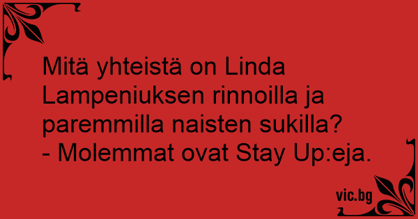 Mitä yhteistä on Linda Lampeniuksen rinnoilla ja paremmilla naisten sukilla?