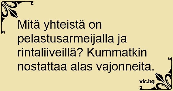 Mitä yhteistä on pelastusarmeijalla ja rintaliiveillä? Kummatkin nostattaa alas vajonneita.