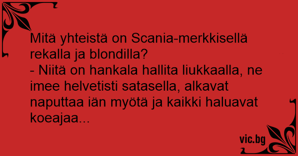 Mitä yhteistä on Scania-merkkisellä rekalla ja blondilla?