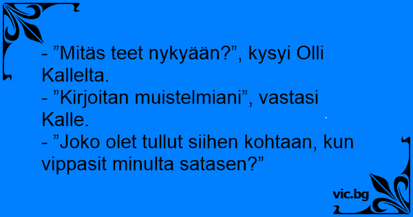 - ”Joko olet tullut siihen kohtaan, kun vippasit minulta satasen?”