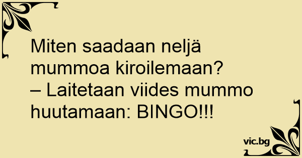 – Laitetaan viides mummo huutamaan: BINGO!!!