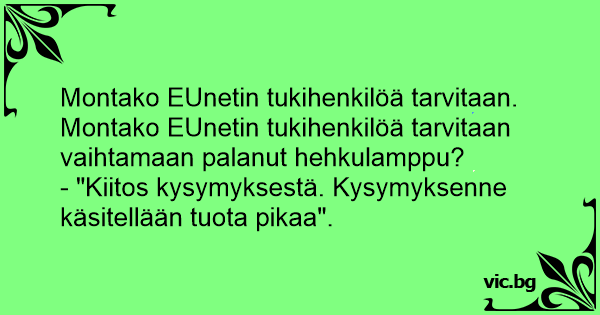 Montako EUnetin tukihenkilöä tarvitaan vaihtamaan palanut hehkulamppu?