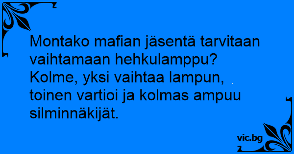Montako mafian jäsentä tarvitaan vaihtamaan hehkulamppu?