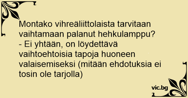 Montako vihreäliittolaista tarvitaan vaihtamaan palanut hehkulamppu?