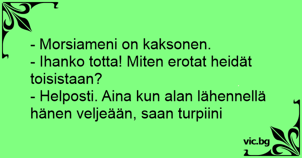 - Morsiameni on kaksonen.