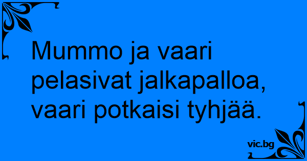 Mummo ja vaari pelasivat jalkapalloa, vaari potkaisi tyhjää.