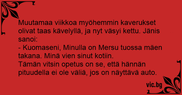 Tämän vitsin opetus on se, että hännän pituudella ei ole väliä, jos on näyttävä auto.