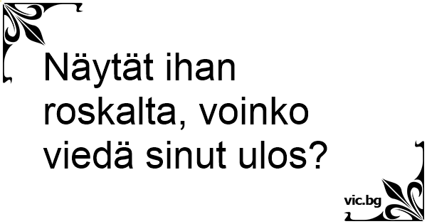 Näytät ihan roskalta, voinko viedä sinut ulos?