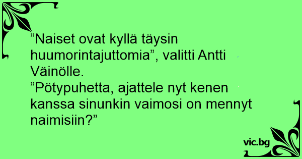 ”Naiset ovat kyllä täysin huumorintajuttomia”, valitti Antti Väinölle.